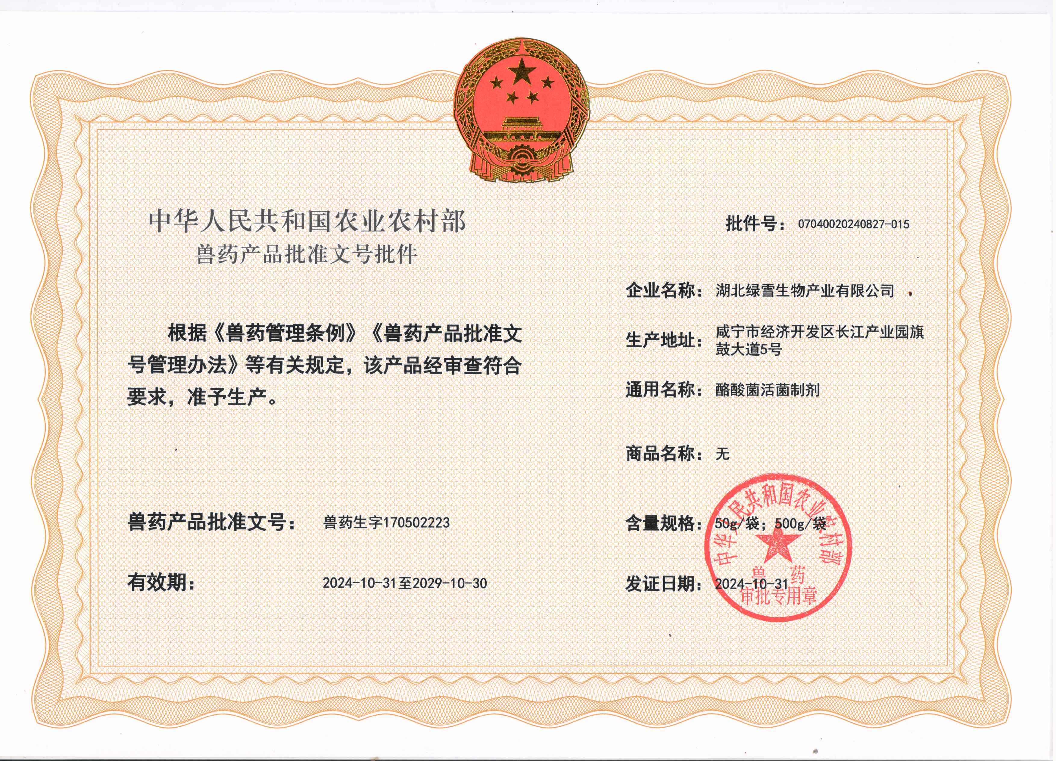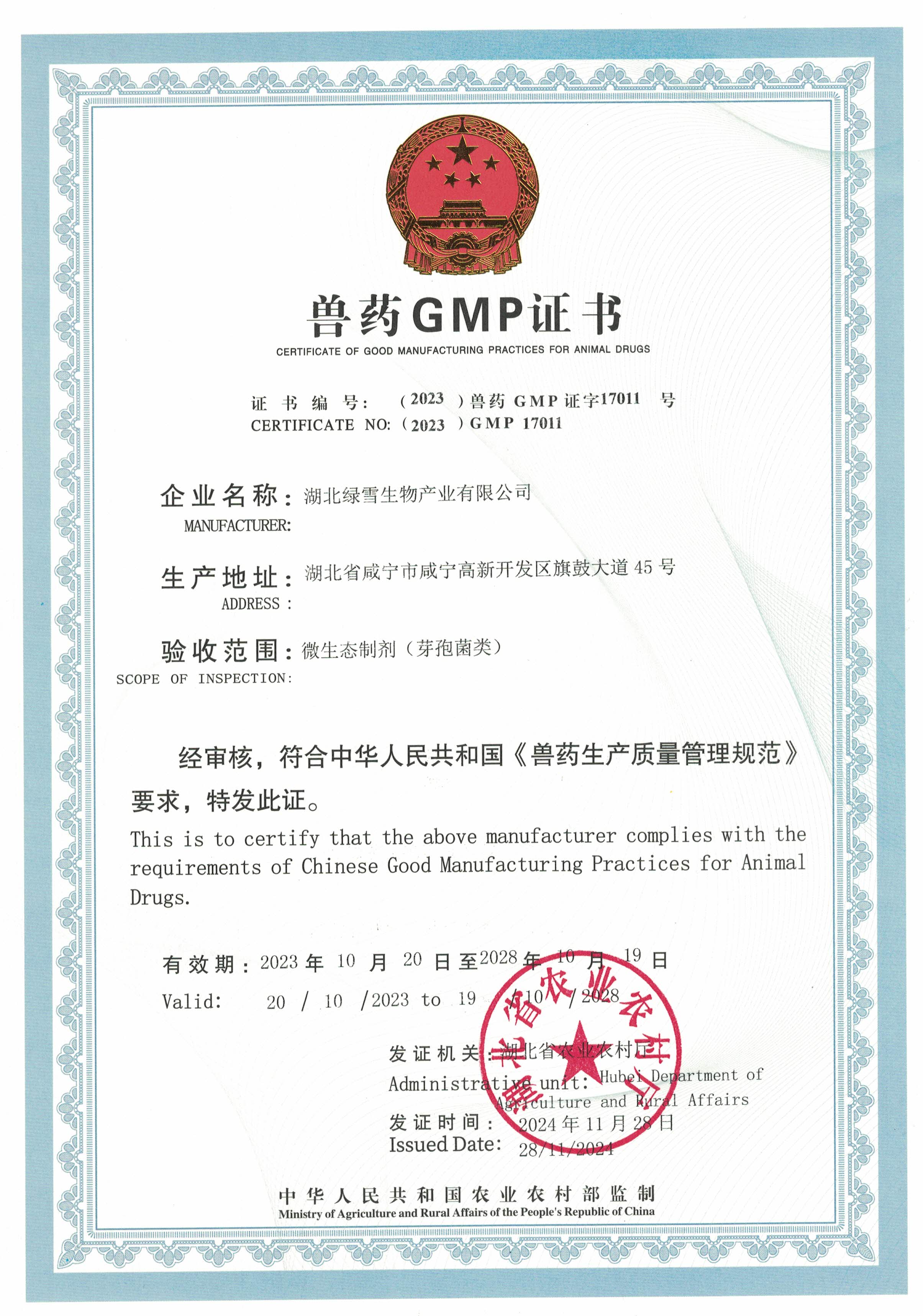 湖北绿雪生物产业有限公司始终以卓越品质与创新精神为核心,在行业深耕多年,赢得了广泛认可与多项权威荣誉。我们荣获[“高新区高新技术企业突出单位”“生物兽药工程技术研究中心”等],这些资质不仅是对我们专业实力与服务水平的肯定,更是我们持续进步的驱动力。未来,我们将继续秉持初心,以更高的标准为客户创造价值,用实力见证品牌力量!
