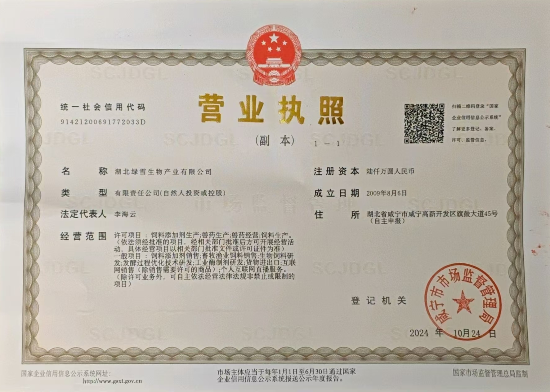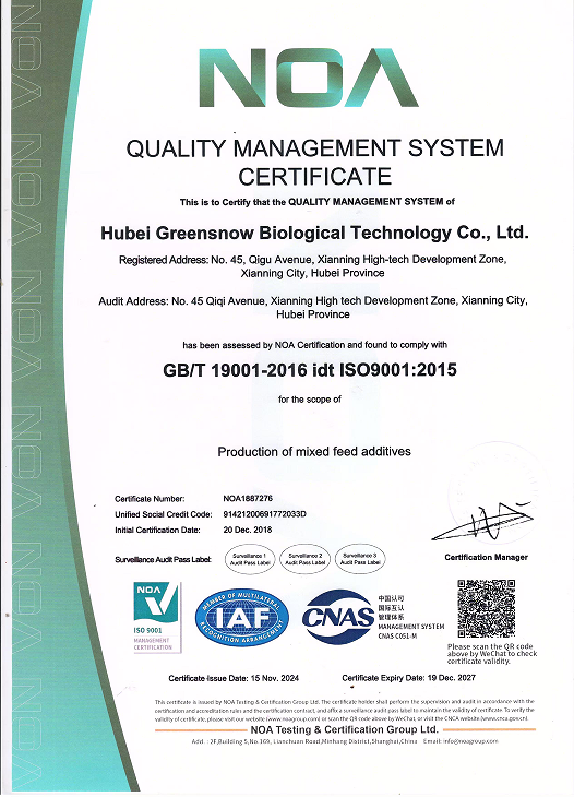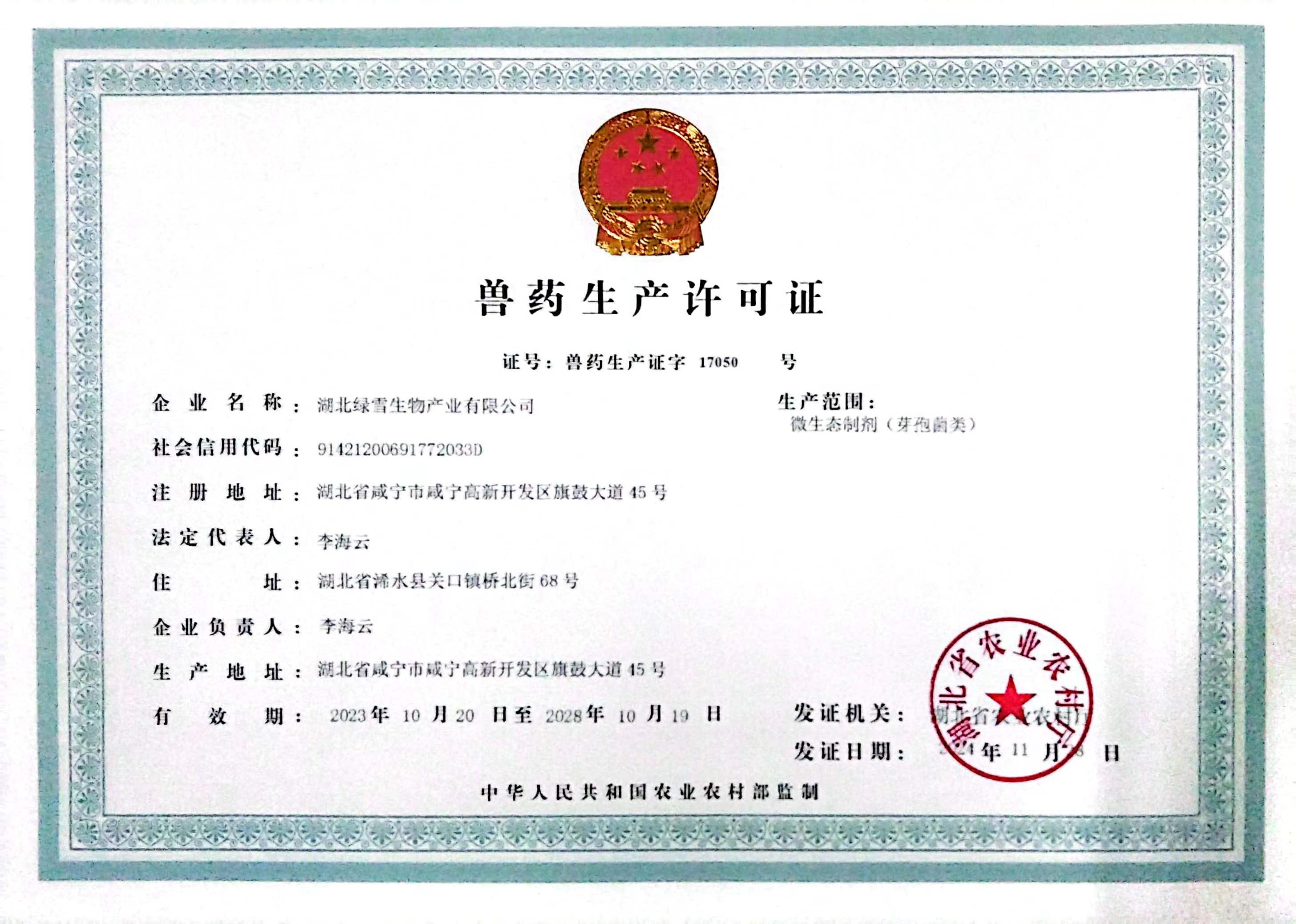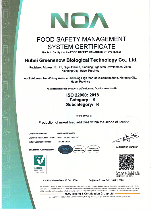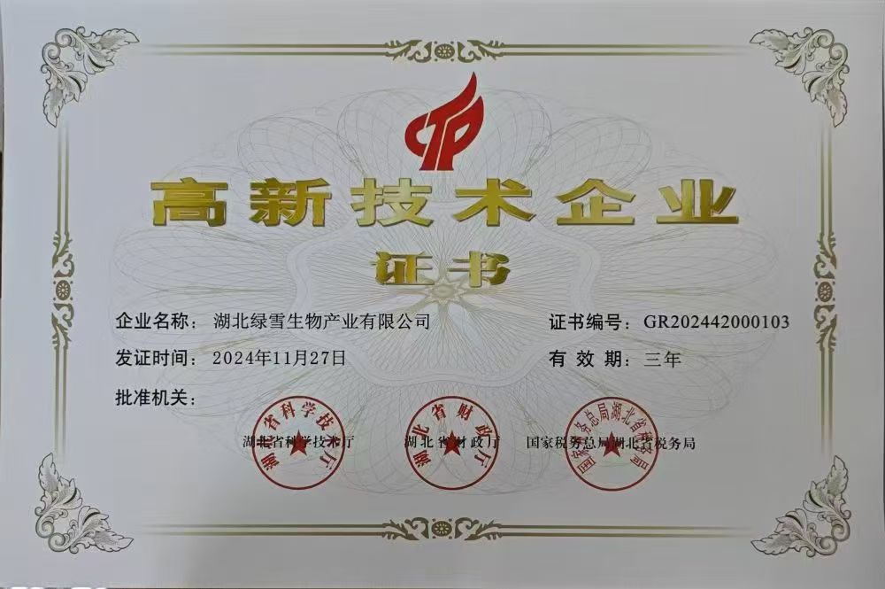 湖北绿雪生物产业始终秉持诚信经营、专业服务的理念,通过多年的稳健发展,已获得多项权威资质认证。这些资质不仅是对我司技术实力与服务质量的认可,更是我们为客户提供合规、高效、可靠服务的坚实保障。未来,我们将持续完善管理体系,提升专业水平,以更高标准回馈客户信任。